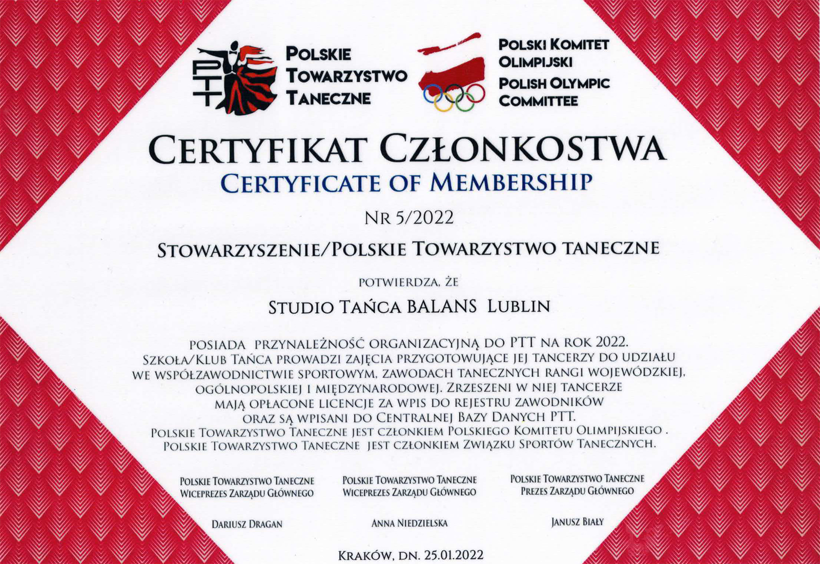 DEKLARACJA CZŁONKA STUDIO TAŃCA BALANS pobierz |